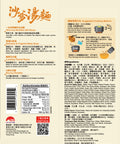 沙爹湯底以精選花生、椰漿粉、香料及其他材料精製而成,微微辛辣;花生醬以精選優質花生,經多道工序製作而成,香而不膩,醇厚順滑。將花生醬融合沙爹湯底,味道平衡,口感濃稠,極具層次,極盡「掛麵」之能。產品選用正宗台灣地區製造日曬關廟麵, Q彈有勁,口感滿分!